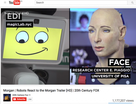 What if robots watched movies? Two of the world’s most advanced robots – magicLab’s EDI (Electronic Deceptive Intelligence) and the University of Pisa’s FACE (Facial Automation for Conveying Emotions) viewed the trailer for MORGAN.