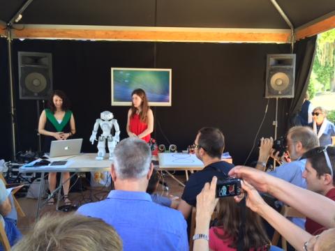 On Sunday, EASEL & SPECS researchers Vicky Vouloutsy, Maria Blancas, with Anna Mura, presented to the general public "Biomimetic Robots to understand human behavior." Thanks to robotics we can study aspects of brain function, such as for instance learning and social behavior. We invited people to get to know this world with a few examples of 3D printed robots, such as the balancing robot and Codibot designed and produced by SPECS, as well as the NAO robot, and to discover aspects of our own behavior. This activity was supported by the European projects: EASEL and WYSIWYD .
